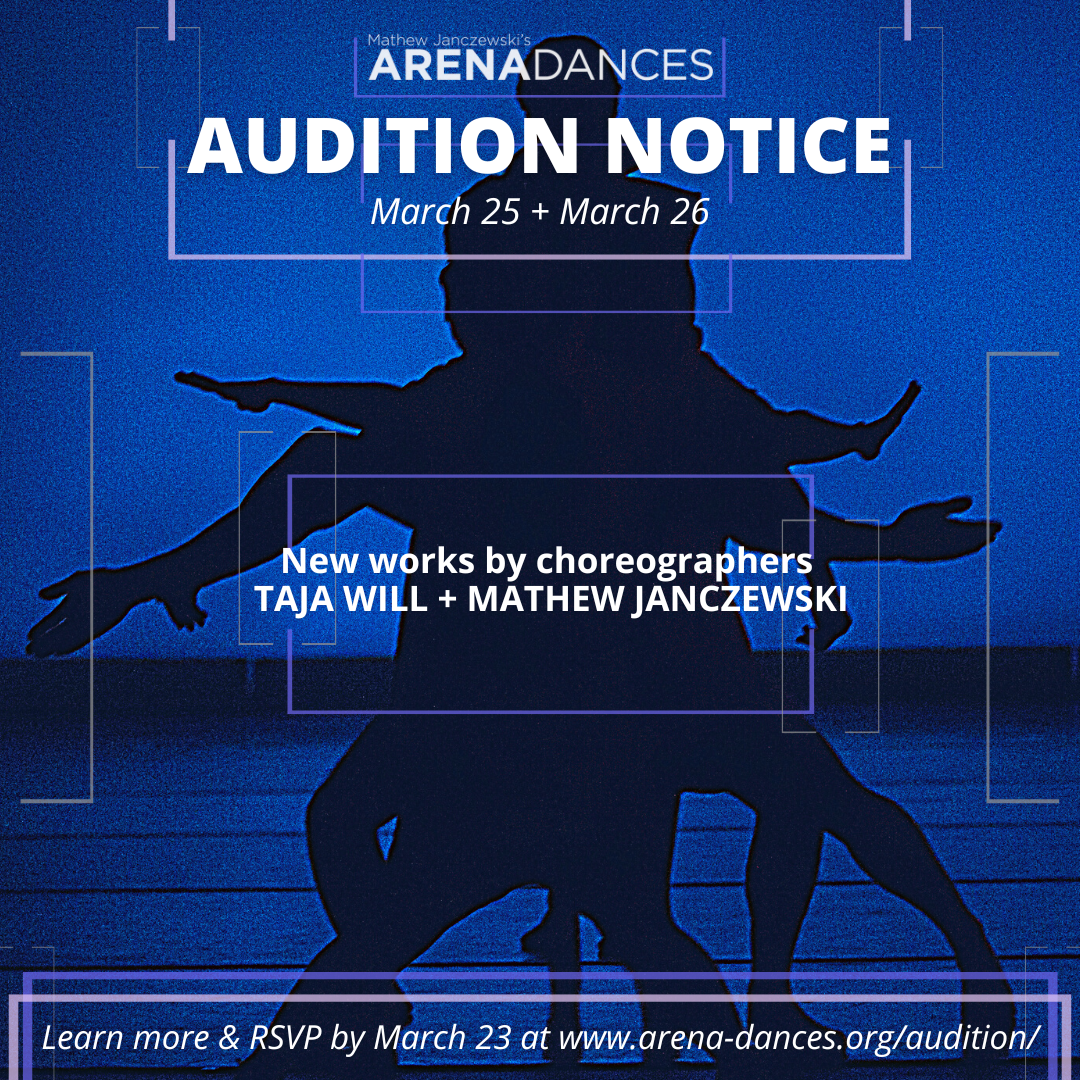 Please send inquiry to ARENA’s Artistic Director, Mathew Janczewski at arenadances@gmail.com by noon on Friday, March 24.