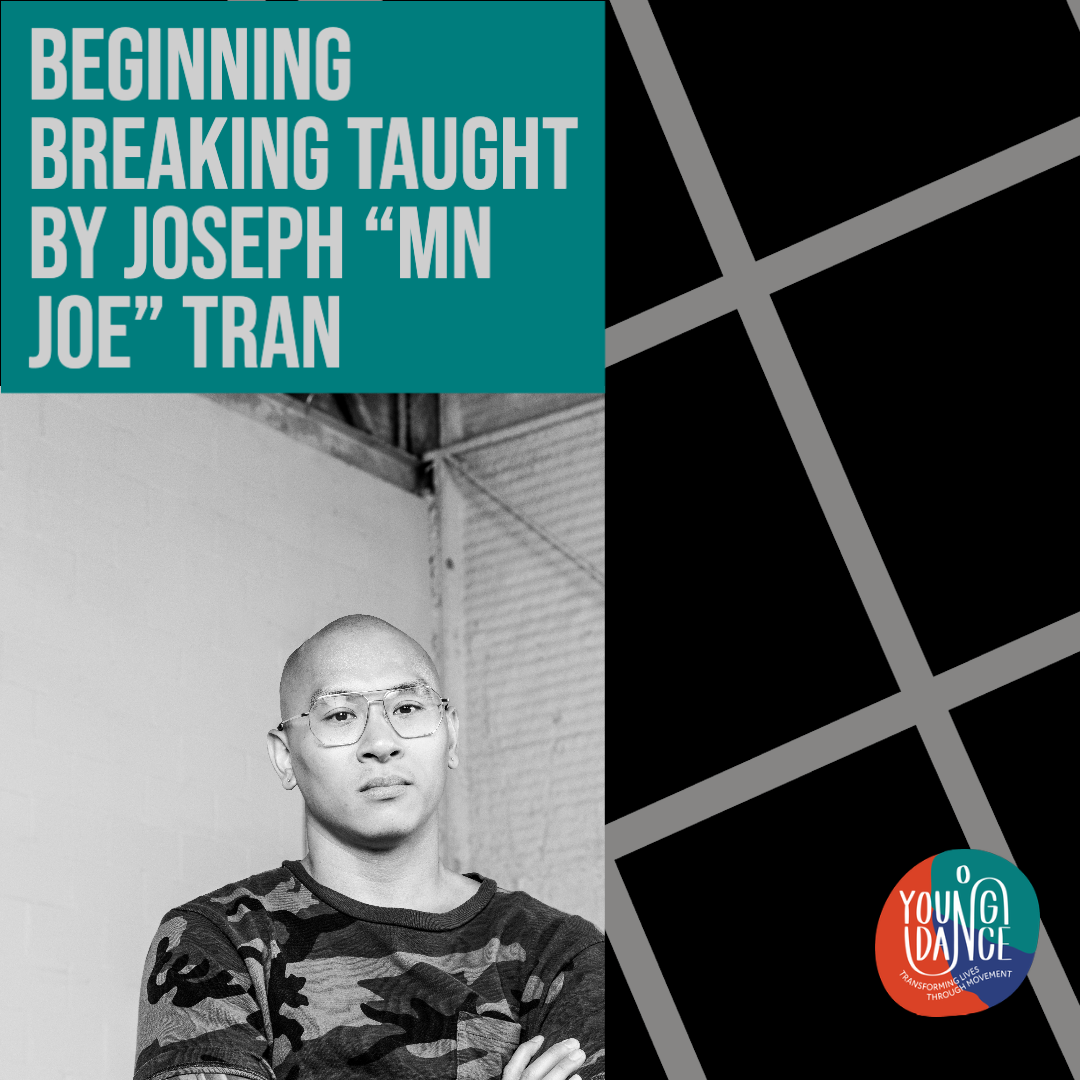 Young Dance is thrilled to offer Beginning Breaking with world-renowned breaker Joseph “MN Joe” Tran. In this class, students ages 8-13 will learn the fundamentals of breaking, including Toprocks, Go-downs, Footwork, Powermoves, and Freezes, in a supportive environment. In addition to learning technique, dancers will have opportunities to advance their freestyling/improvisation skills, as well as to develop choreography collaboratively with their peers.