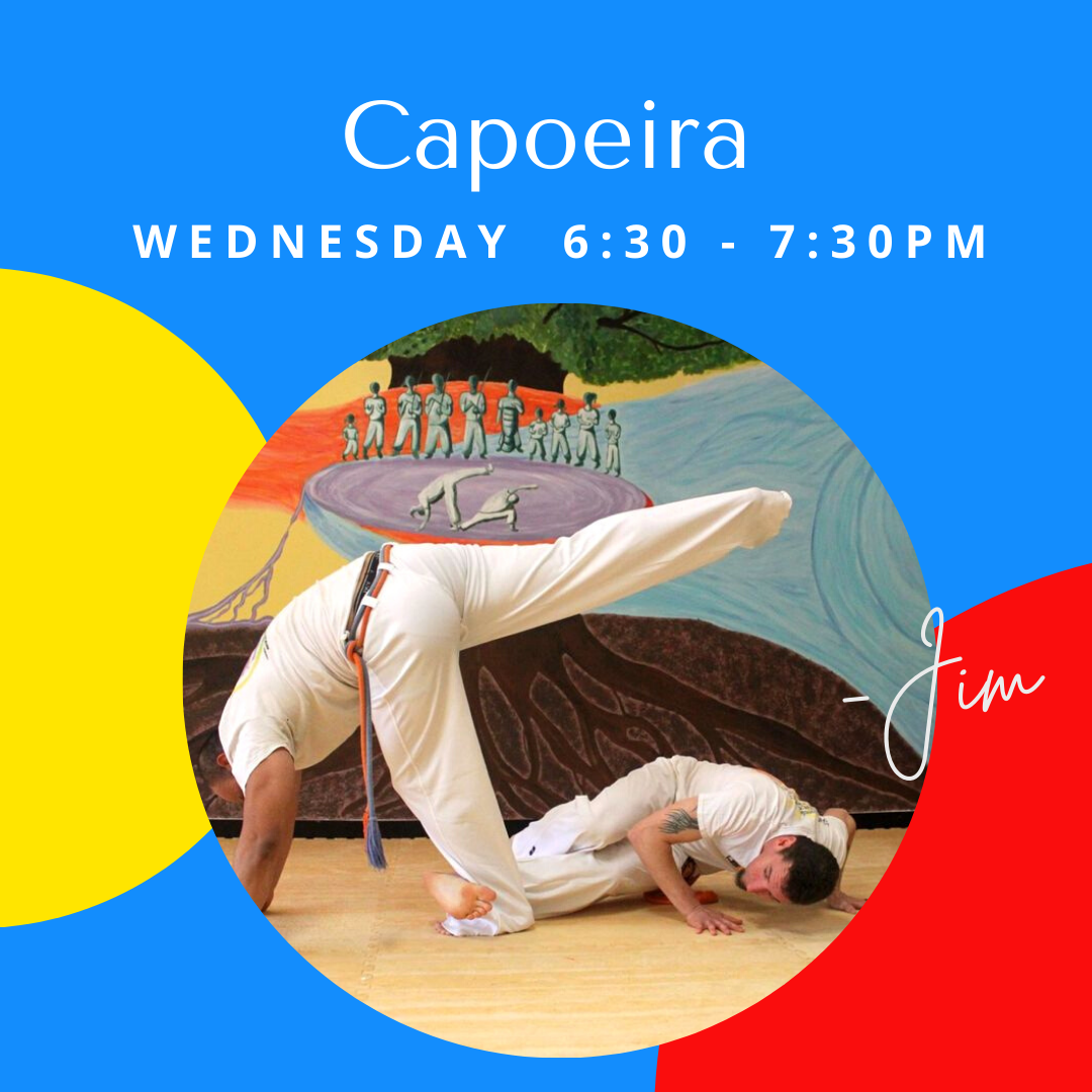 6:30-7:30pm: Capoeira for ages 12 and older with Jim Bozic and Miles Blount