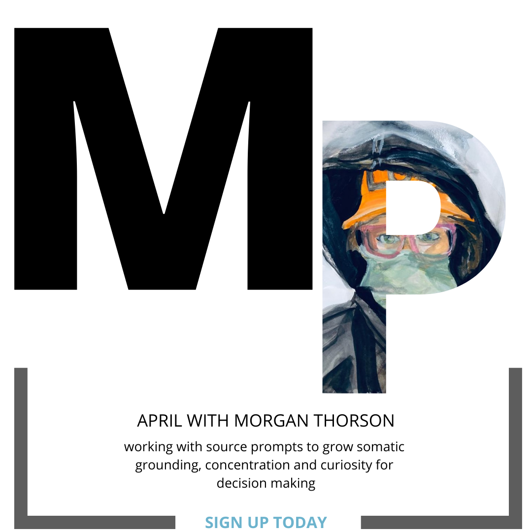 Moving is dancing and dancing is working. We will work with prompts sourced from image, sound, drawing, touch-points, and text, to enhance states of feeling and moving. As we practice with these prompts, we grow somatic grounding, concentration and curiosity for how we make decisions, embody action and cultivate images. With this research we consider the witness as active participant, and frame and space as dynamic materials. I aspire to facilitate a space for personal and collective journey as well as the reorientation of self-perception to the magic we make when we work. Bring your notebooks.