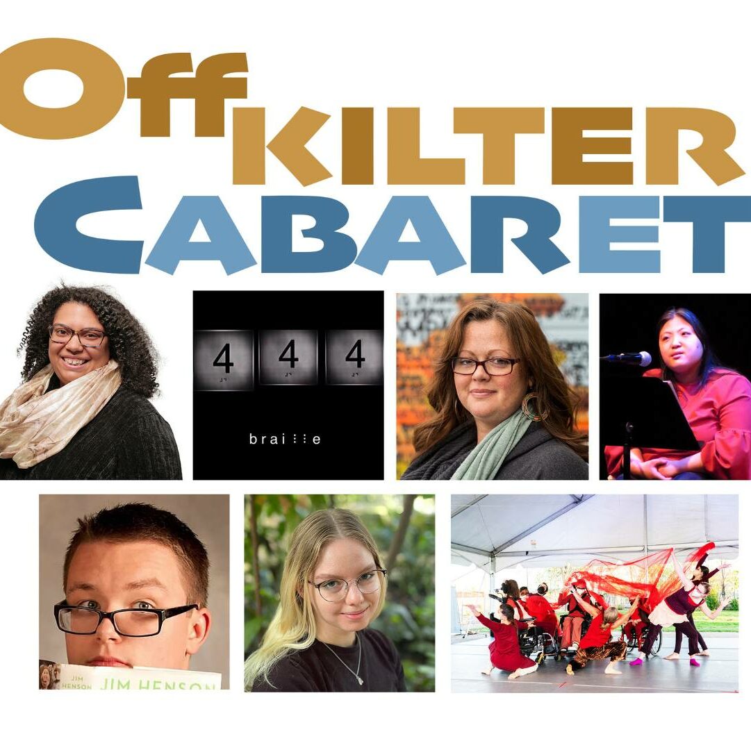 Off-Kilter Cabaret will occur November 17, 18, and 19 at the fully accessible TekBox in the Cowles Center for Dance. The event includes accessibility accommodations such as American Sign Language (ASL) interpretation, Audio Description, and Live Captioning.
