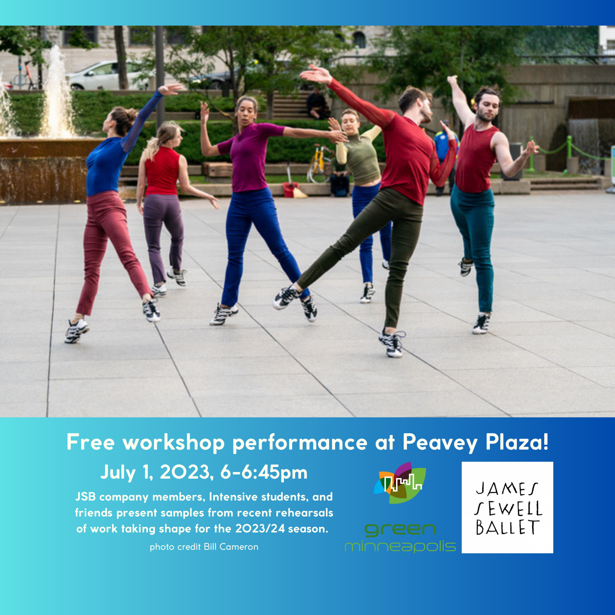 Green Minneapolis presents Summer at Peavey Plaza – an outdoor series of over 100 free performances taking place May through September, featuring the best of local Twin Cities music, dance, and theater in a beautiful outdoor setting. ARENA DANCES is thrilled to return to Peavey Plaza again this year!