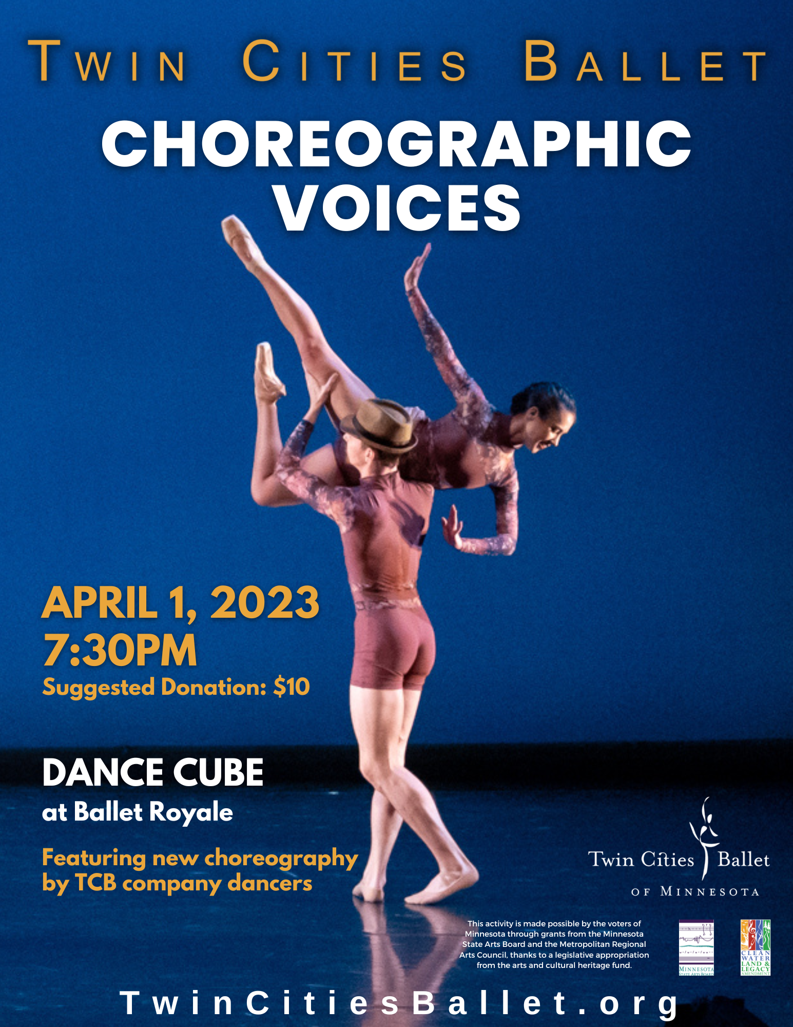 TCB’s Choreographic Voices will take place in the “Dance Cube” at Ballet Royale on April 1 at 7:30pm.