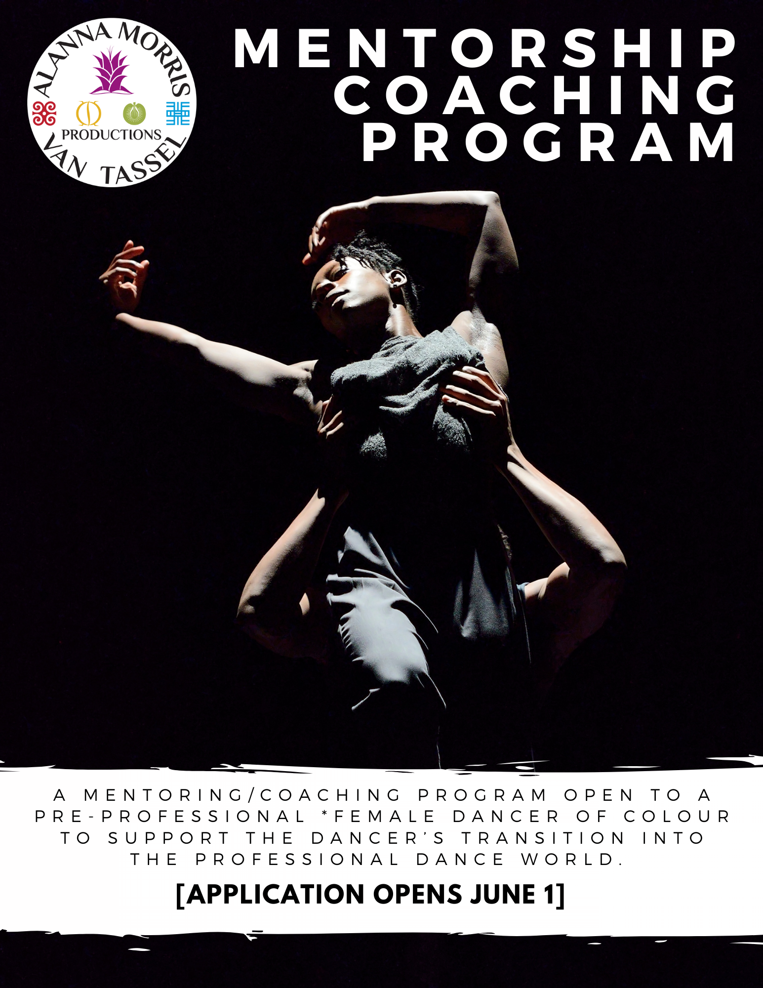 AMVTP’s mentoring/coaching program is a one-year mentorship open to a young professional entering their junior year of high school in Fall 2021 and graduating in the class of 2023. This program is for a self-driven, self-motivated and focused female dancer of colour looking to pursue a career in dance. The mentee will work with AMVTP Artistic Director and independent Dancer-Choreographer, Alanna Morris-Van Tassel, on post-secondary school/college-preparedness as well as life and business skills.
