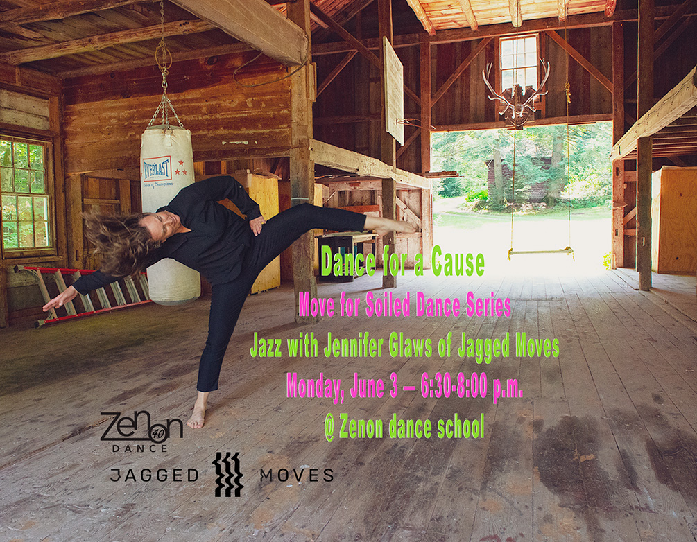 Join Jagged Moves’ Artistic Director Jennifer Glaws in a donation based Jazz class for mixed abilities in support of Soiled Dance Series. All money raised will go directly in supporting the presenting and creating artists in producing a second series of this great event that elevates dance, the land, animals, and agriculture.