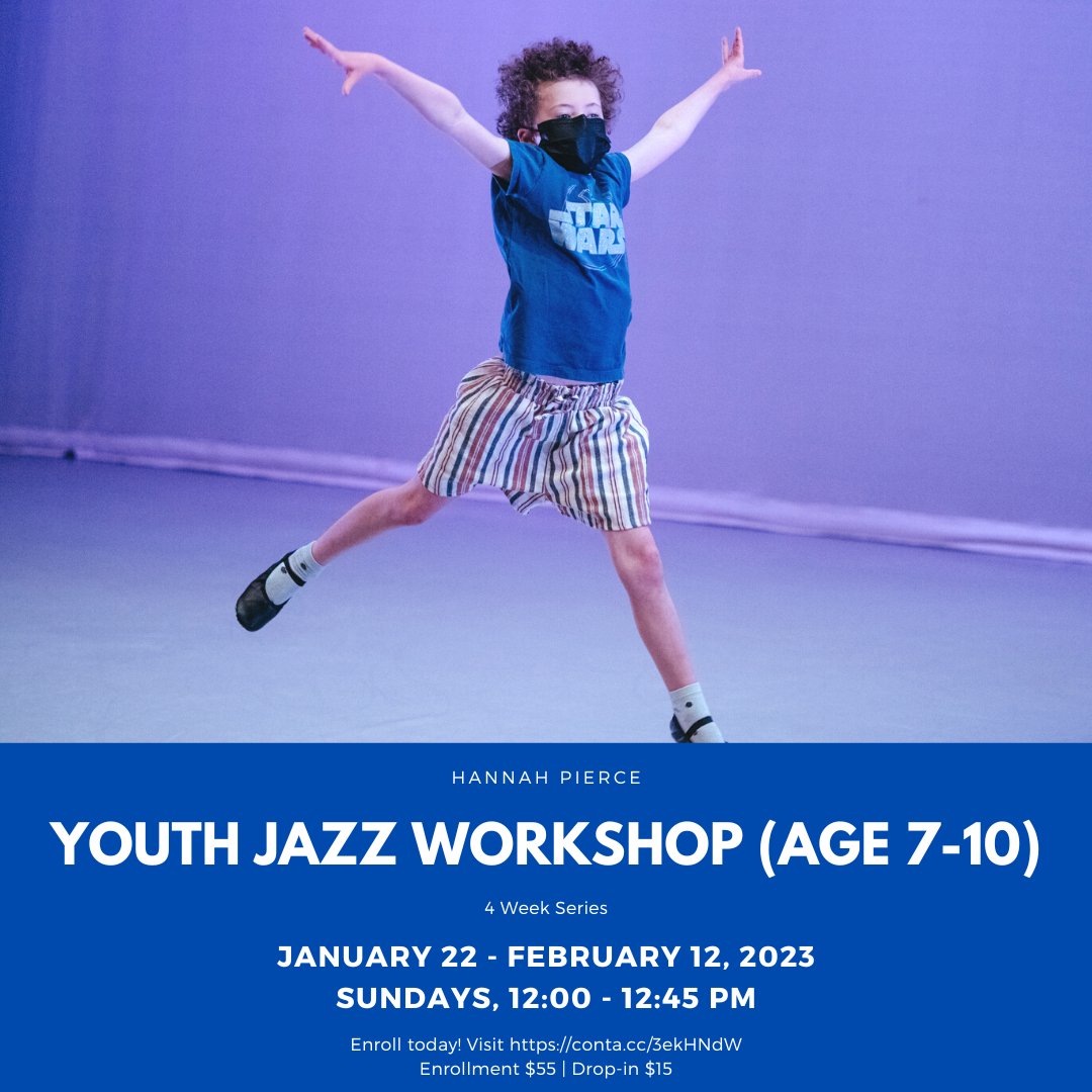 Hannah Pierce offers a great workshop series for new and continuing jazz dancers who love to move! Students will learn fundamental techniques and choreography while expanding their knowledge of rhythm and movement.