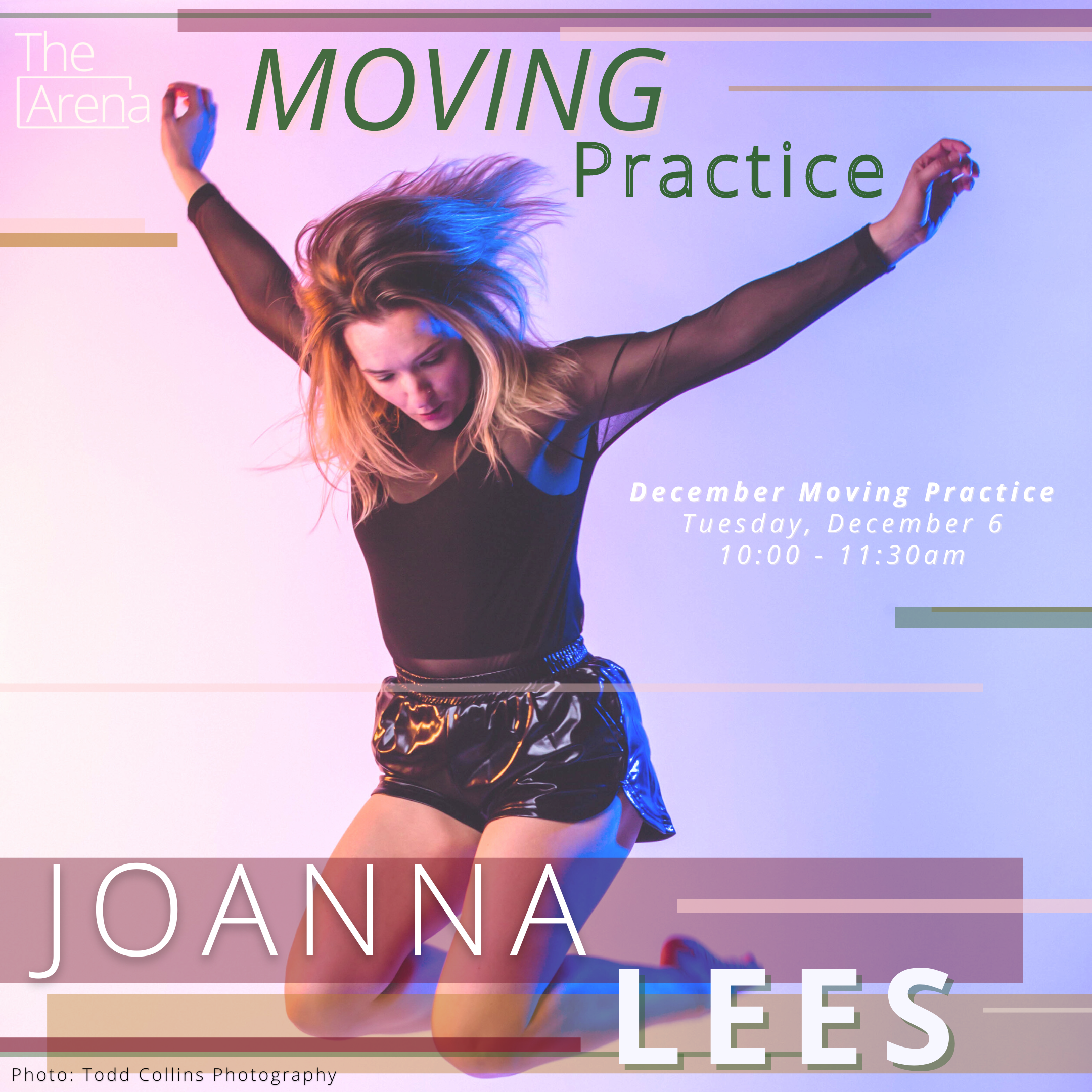 Move BIG, sweat and play in an energizing atmosphere, supported by pop hits, for this contemporary movement practice. Participants will build awareness and explore expansive possibilities within their own individuality and identities. Through improvised and structured movement vocabulary, participants will be encouraged to research freedom, 3-D expansion, mobility, rigor, presence, and agency in choice-making and empowerment with each individual’s own unique body.