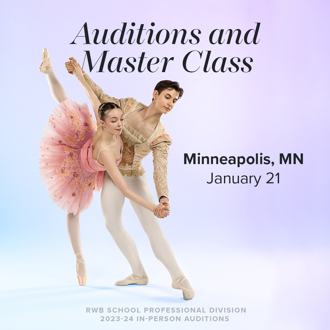 On Sunday, January 21, the Royal Winnipeg Ballet (RWB) School lands in Minneapolis to host in-person auditions for its prestigious Professional Division programs. The RWB School invites aspiring dancers from across the United States to showcase their talents and join one of the most esteemed ballet schools in the world. The auditions take place at the Minnesota Dance Theater located at The Cowles Center for Dance & Performing Arts (528 Hennepin Ave, Minneapolis, MN, 55403).
