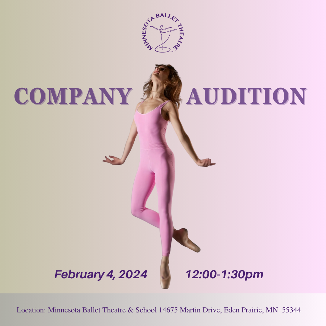 Phase I: Development of new work – An intensive rehearsal process will run for three weeks between February 12-March 1, Monday–Friday from 11:00am-3:00pm. Optional class will be offered free of charge from 9:30-11:00am prior to rehearsal. Rehearsals at St. Paul Ballet.