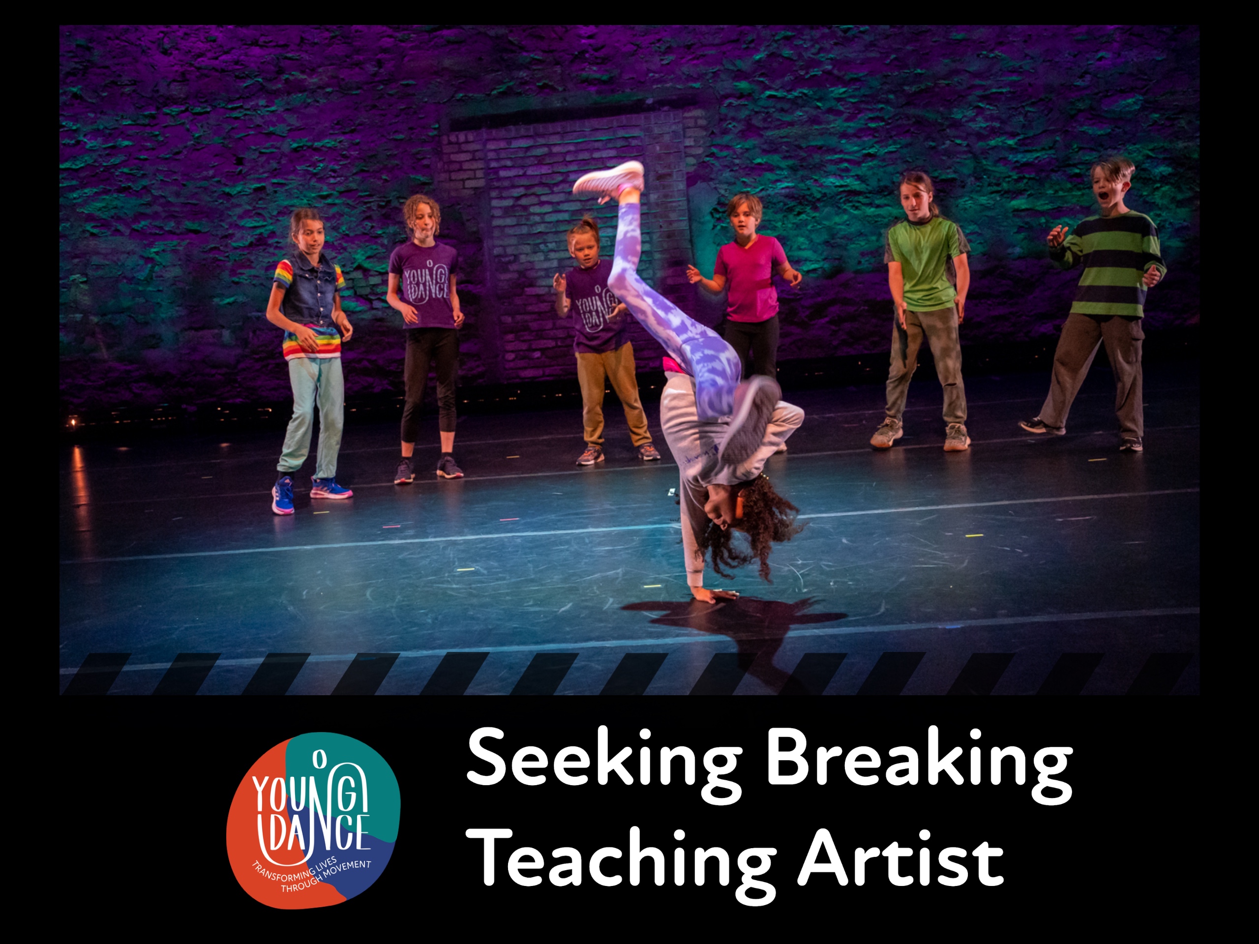 Young Dance seeks a Breaking instructor(s) for the 2023–24 year and beyond. Now in its third year, Young Dance’s Breaking program is growing from one section to two. We seek a skilled instructor to foster a safe, supportive, and rigorous environment. Classes meet weekly on Wednesday and include developing technique and creating a dance for the final performances in May.