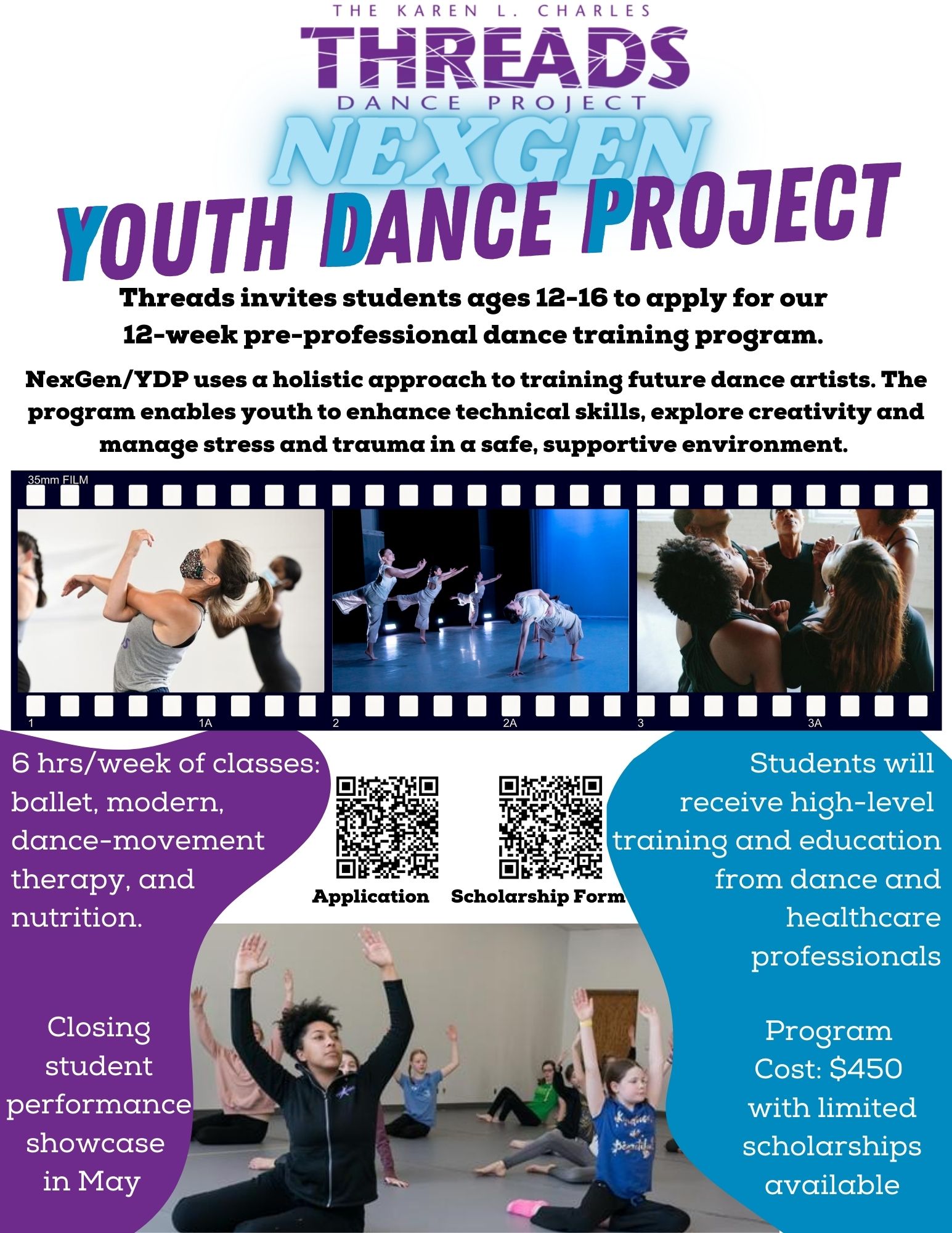 Threads invites students ages 12-16 to apply for our 12-week pre-professional dance training program, NexGen> Youth Dance Project (YDP).