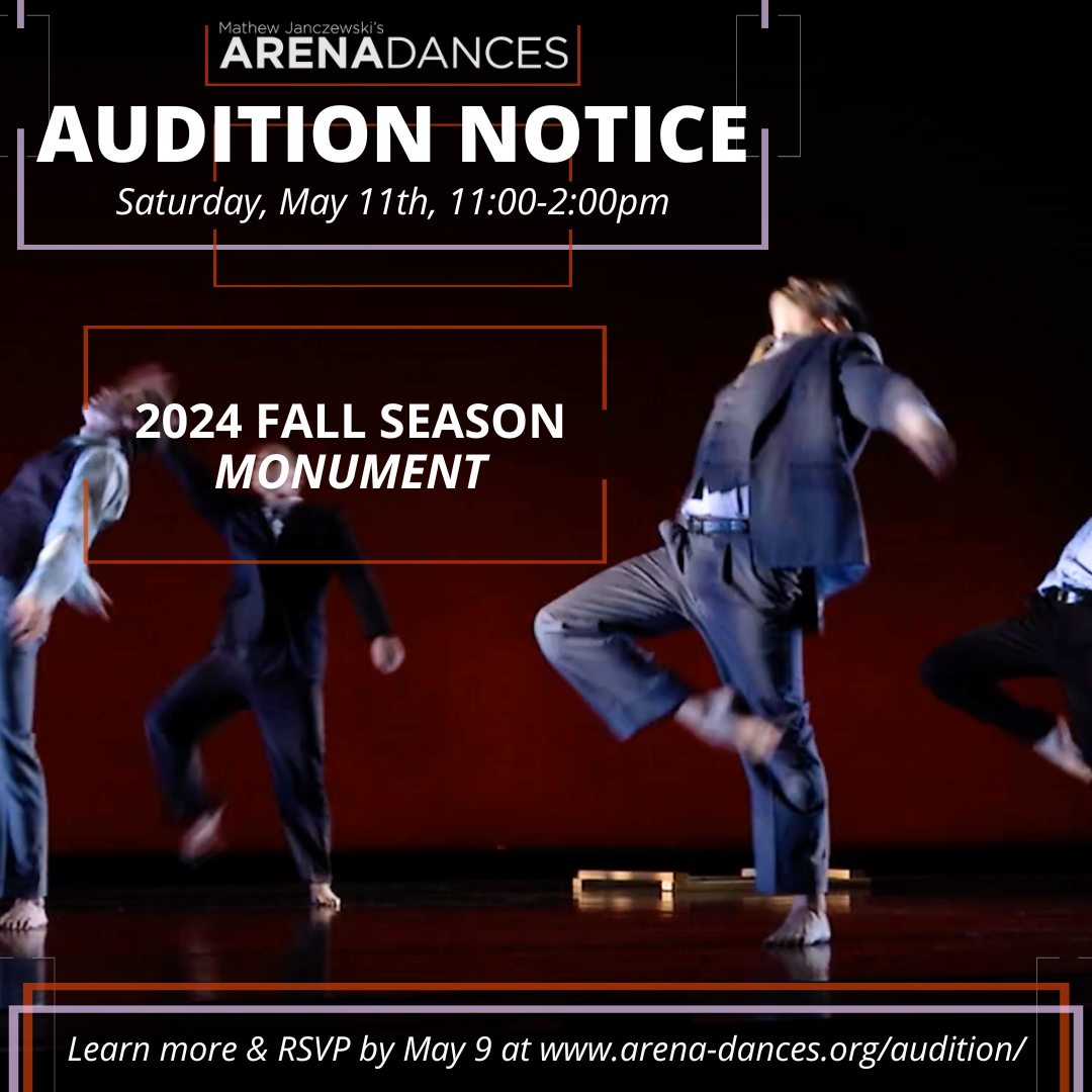 ARENA DANCES seeks experienced dancers with strong technical, artistic, and creative abilities for our twenty-ninth fall season.