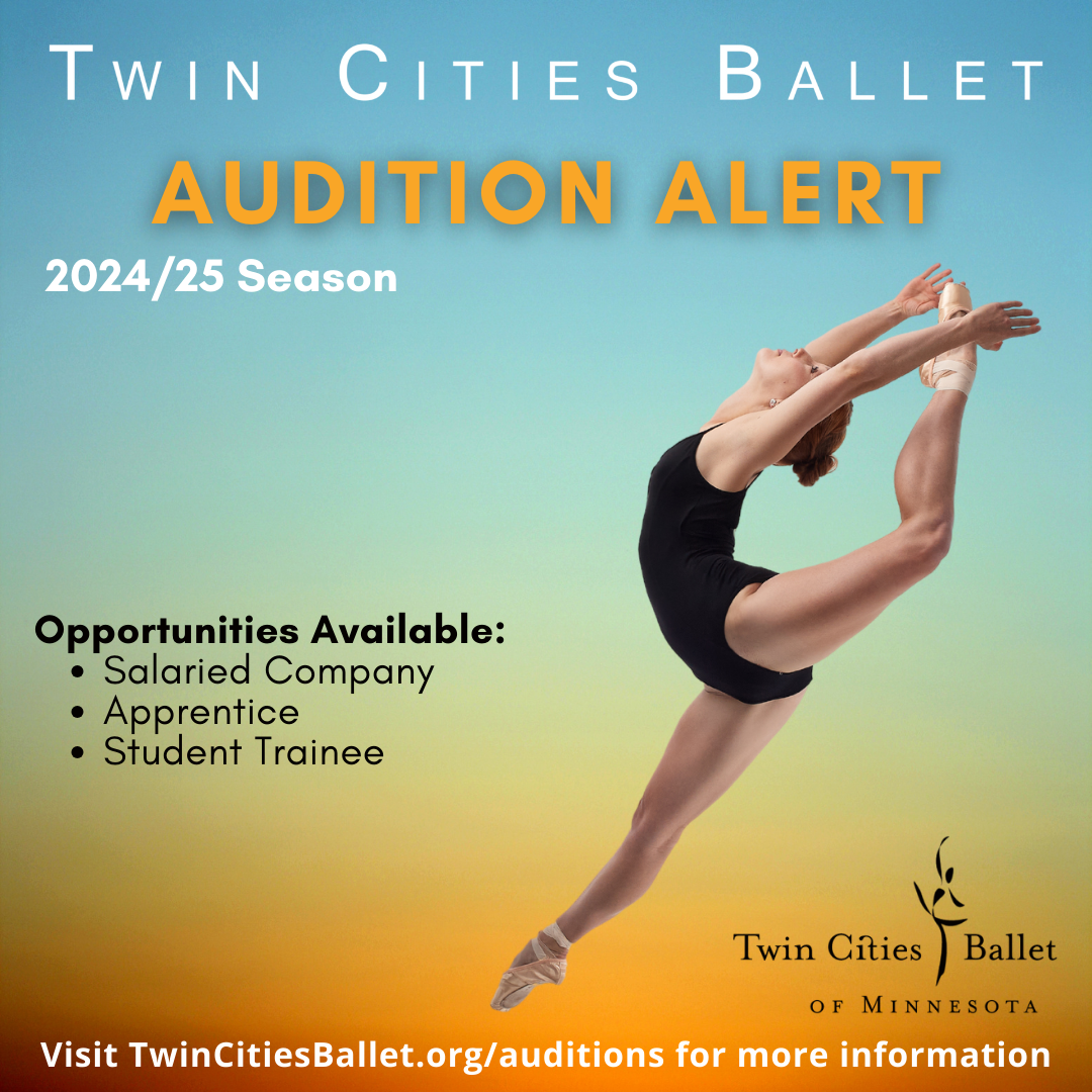 Twin Cities Ballet is seeking Soloist and Principal level dancers for our 2024/25 Season. This is a competitive salaried position with a 35-week season. Strong classical ballet, partnering, and contemporary skills required. You must be eligible to work in the United States.