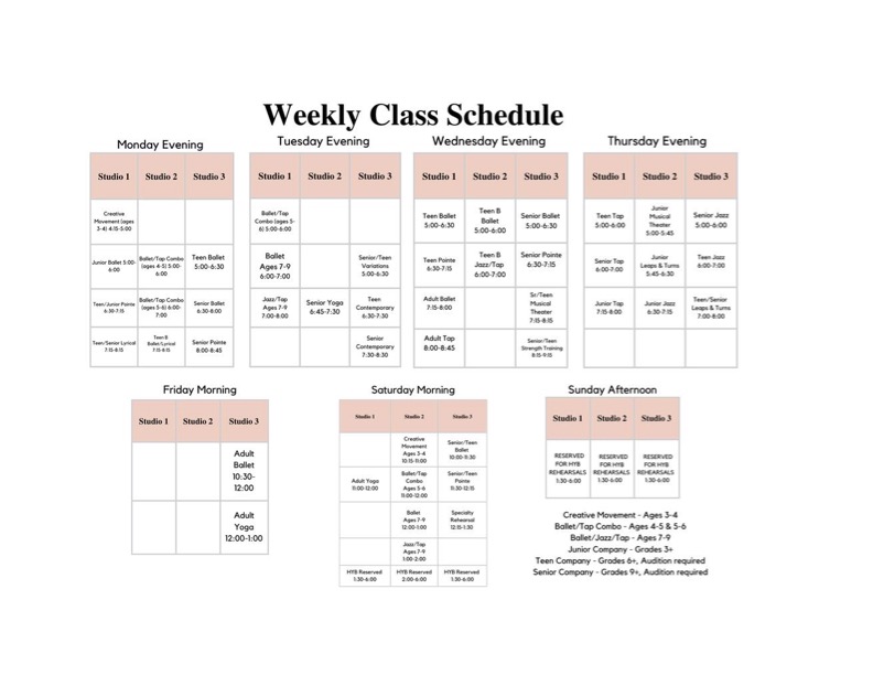 All classes are ballet unless noted otherwise.