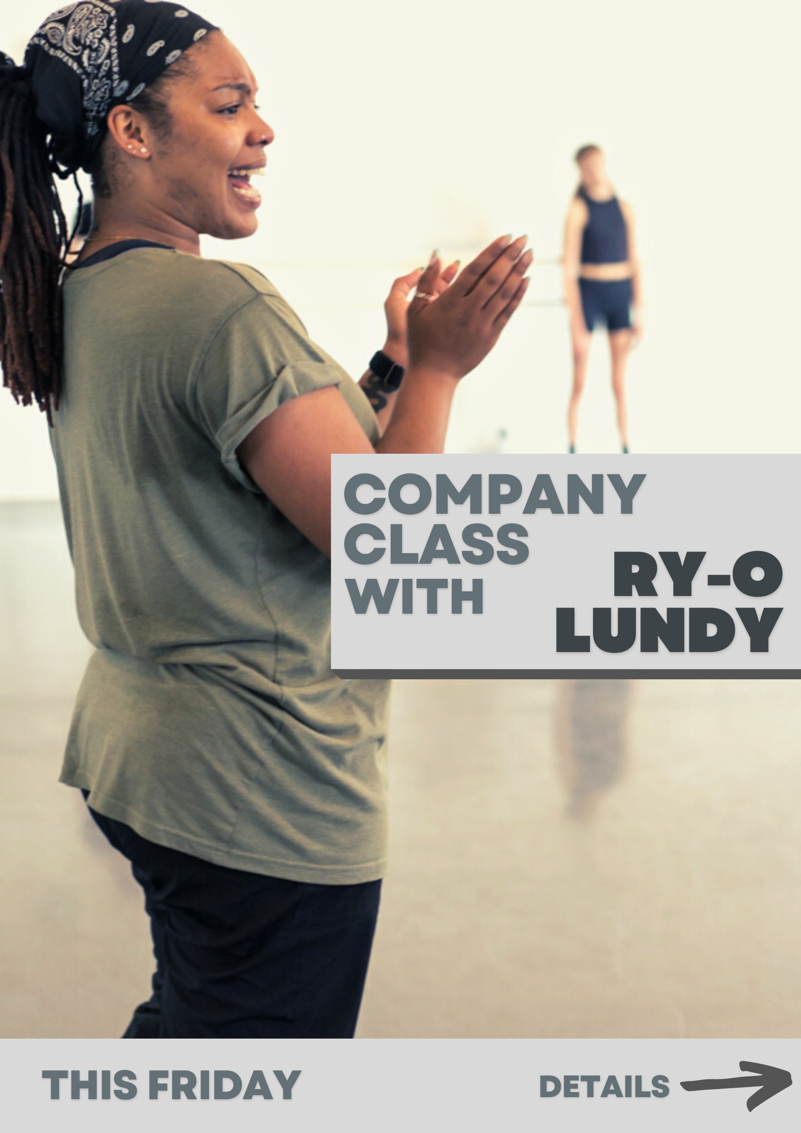 Join us for company class Friday, July 29 with Company Mover Ryan-Olivia Lundy and/or Wednesday, August 3 with Artistic Director Carl Flink.