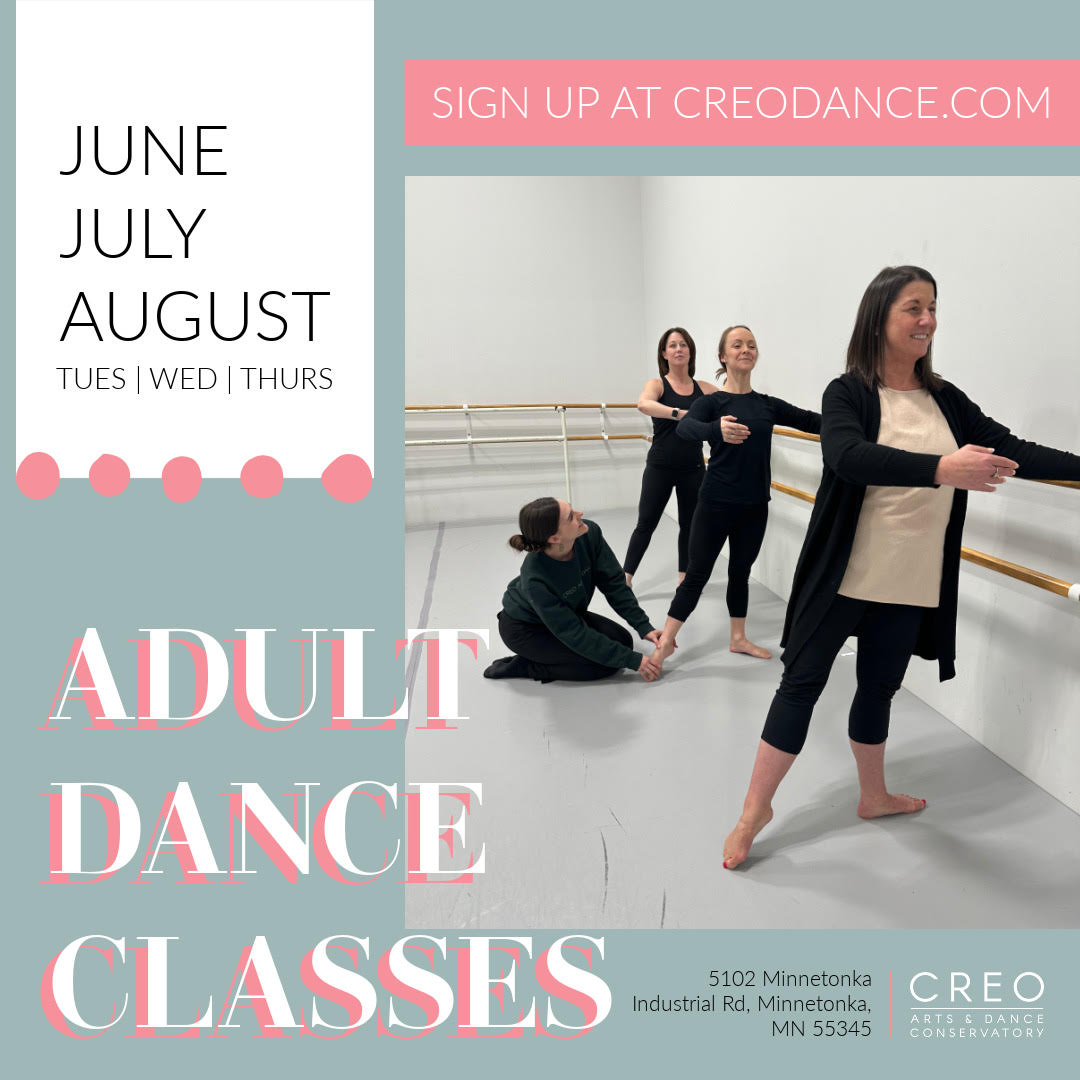 Join us for our ballet, jazz and contemporary adult classes in a joyful and safe environment at Creo Arts and Dance Conservatory in Minnetonka. You can expect a high energy class with motivational dance artists that are experts in their craft!