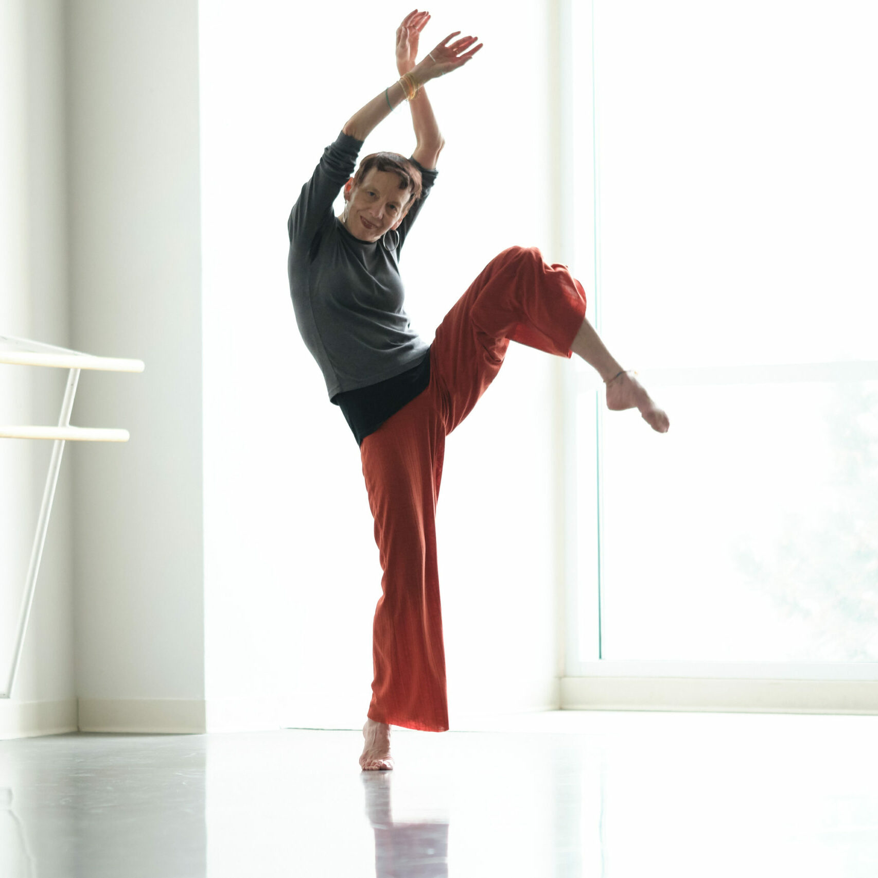 I’ve taught dance for all ages and experience levels for over fifty years. In my weekly session of modern dance classes, we’ll be working with somatic movement, structured improvisation, and floor work to build strength, flexibility, and ease of movement. You’ll learn patterns that move through space in community with other dancers, encouraging spatial and group awareness.