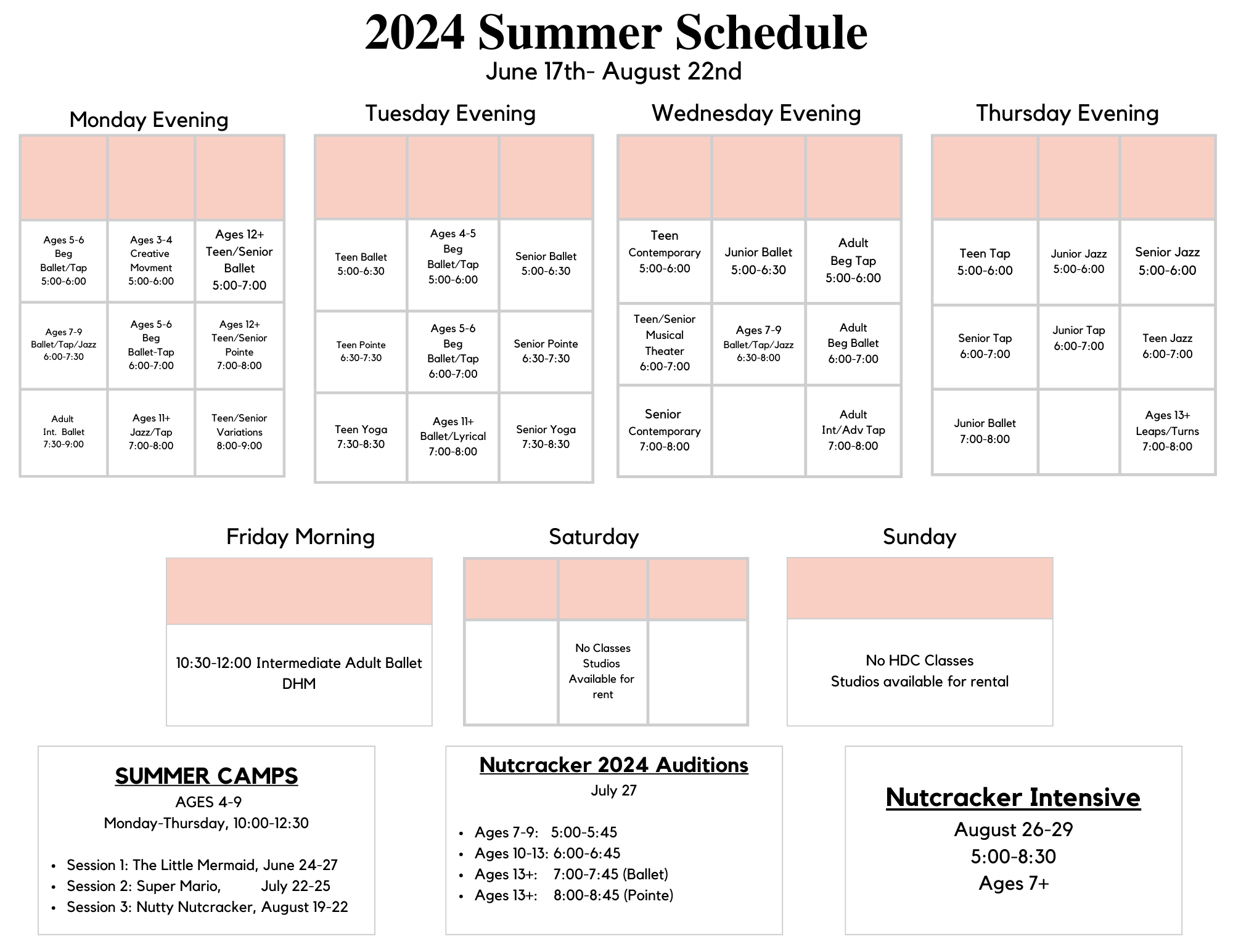 Sunday – Youth Only, June 16 – July 28