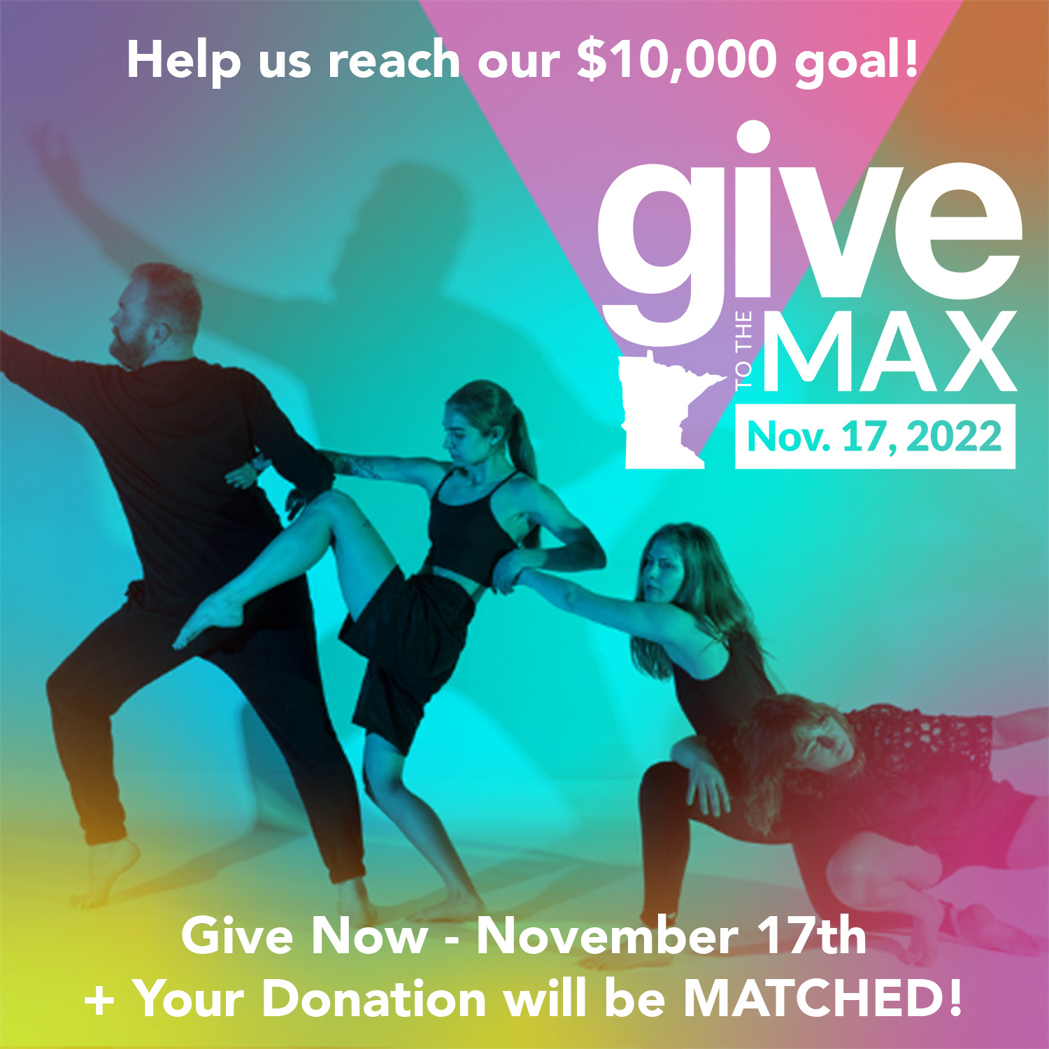 ARENA DANCES is participating in the thirteenth annual Give to the Max giving event taking place this year starting on Tuesday, November 1, and culminating on Thursday, November 17. Give to the Max is a statewide giving event that raises millions each year for more than 6,000 causes across Minnesota and beyond. Considered Minnesota’s holiday for generosity, donors have given more than $225 million since the inaugural Give to the Max Day in 2009.