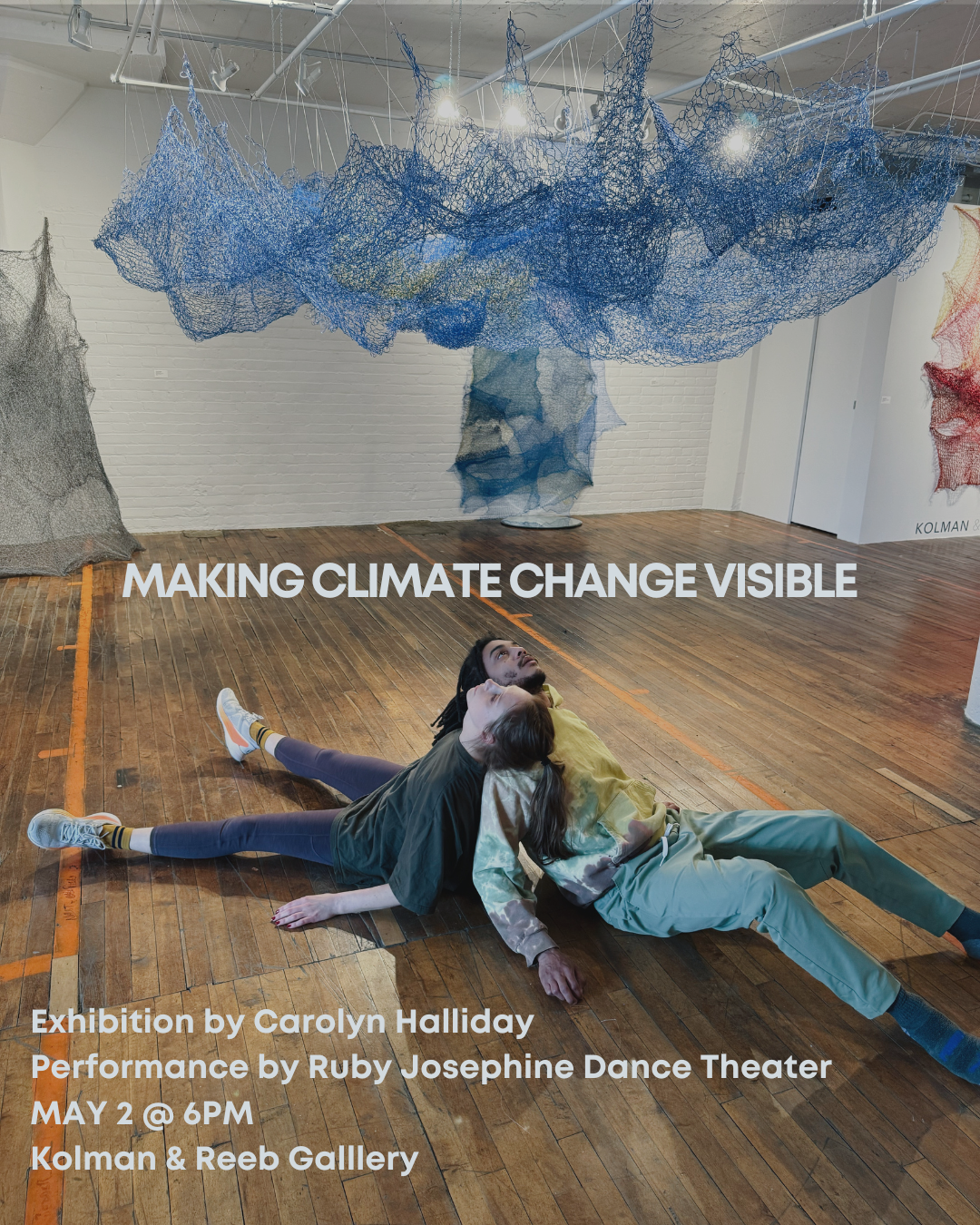 Ruby Josephine Dance Theater (RJDT) has been commissioned to create a durational performance reacting to and dancing within local textile artist Carolyn Halliday’s work. Halliday’s current exhibition titled Making Climate Change Visible is on display at the Kolman and Reeb Gallery where RJDT will perform on May 2 as a part of the Northrup King Building’s Open Thursdays.