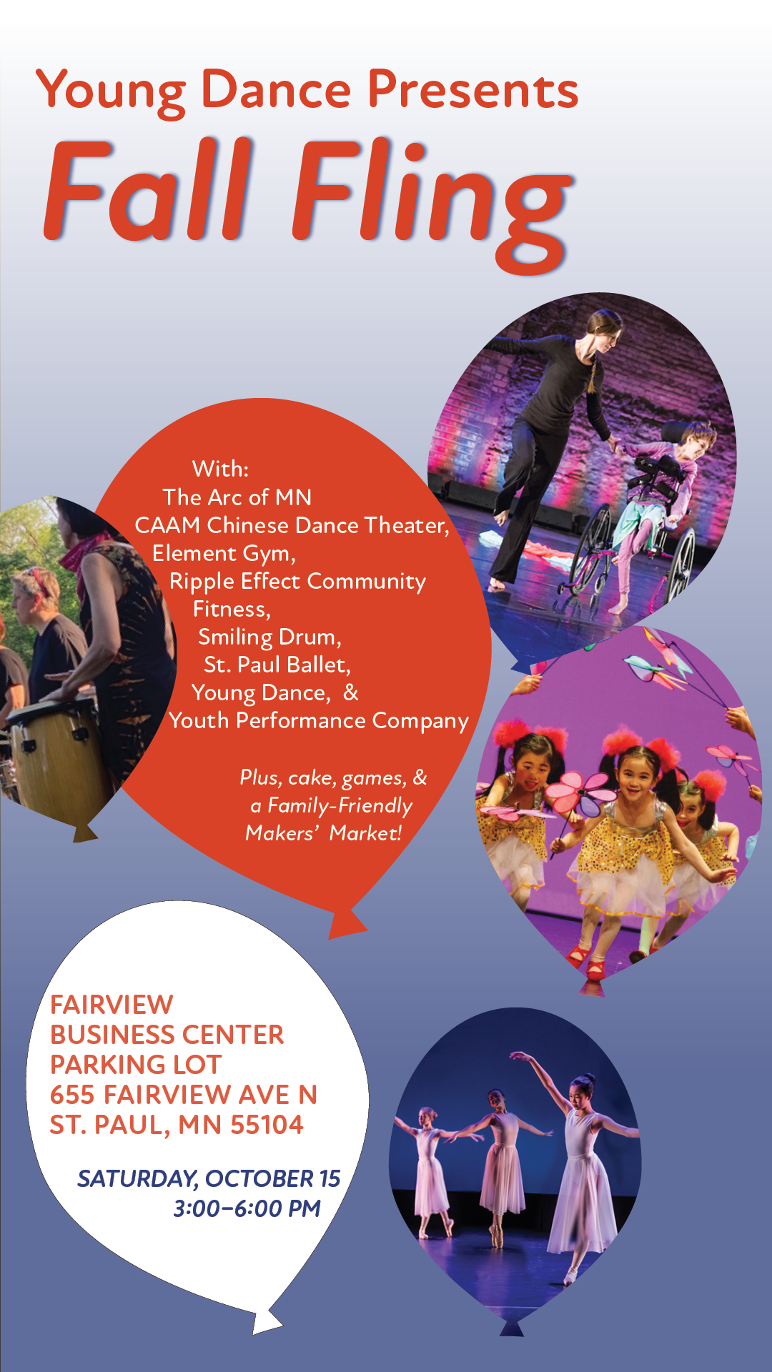 Celebrate 35 years of Young Dance! Play and build community at the Fall Fling on Saturday, October 15 from 3:00–6:00pm.