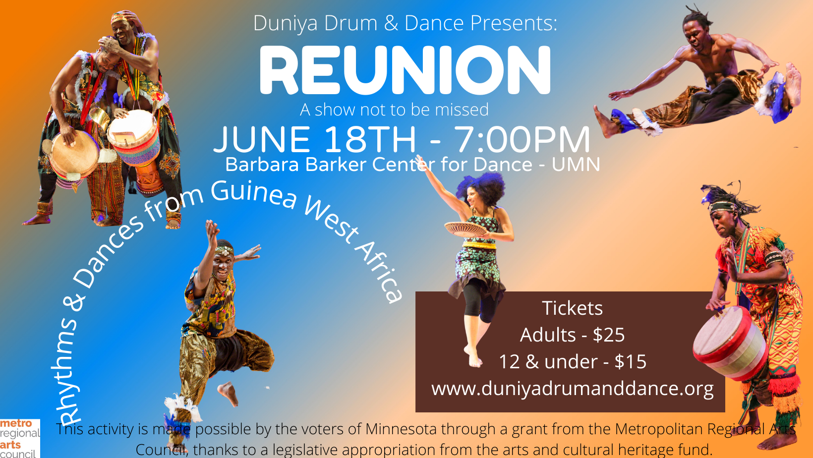 After a three year hiatus from their annual performance and workshop “Fakoly” it is time for a REUNION. Fode Bangoura is bringing in his brothers from across the world as well as some of the greatest talent in Guinea drum and dance to celebrate this special moment of community, family and friends coming together again.