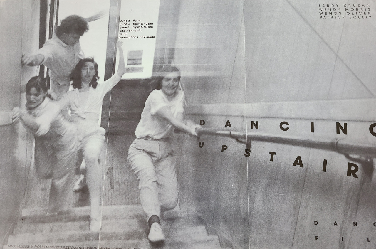Back in the HeyDays of Block E, Patrick Scully had a loft in the very heart of Minneapolis – on Hennepin Avenue, above the Best Steak House, next door to Shinders’ on 7th. Some of his dancer friends/colleagues joined him in presenting a show called Dancing Upstairs. These friends are again joining together to share a show, hence Dancing Upstairs – Then and Now.