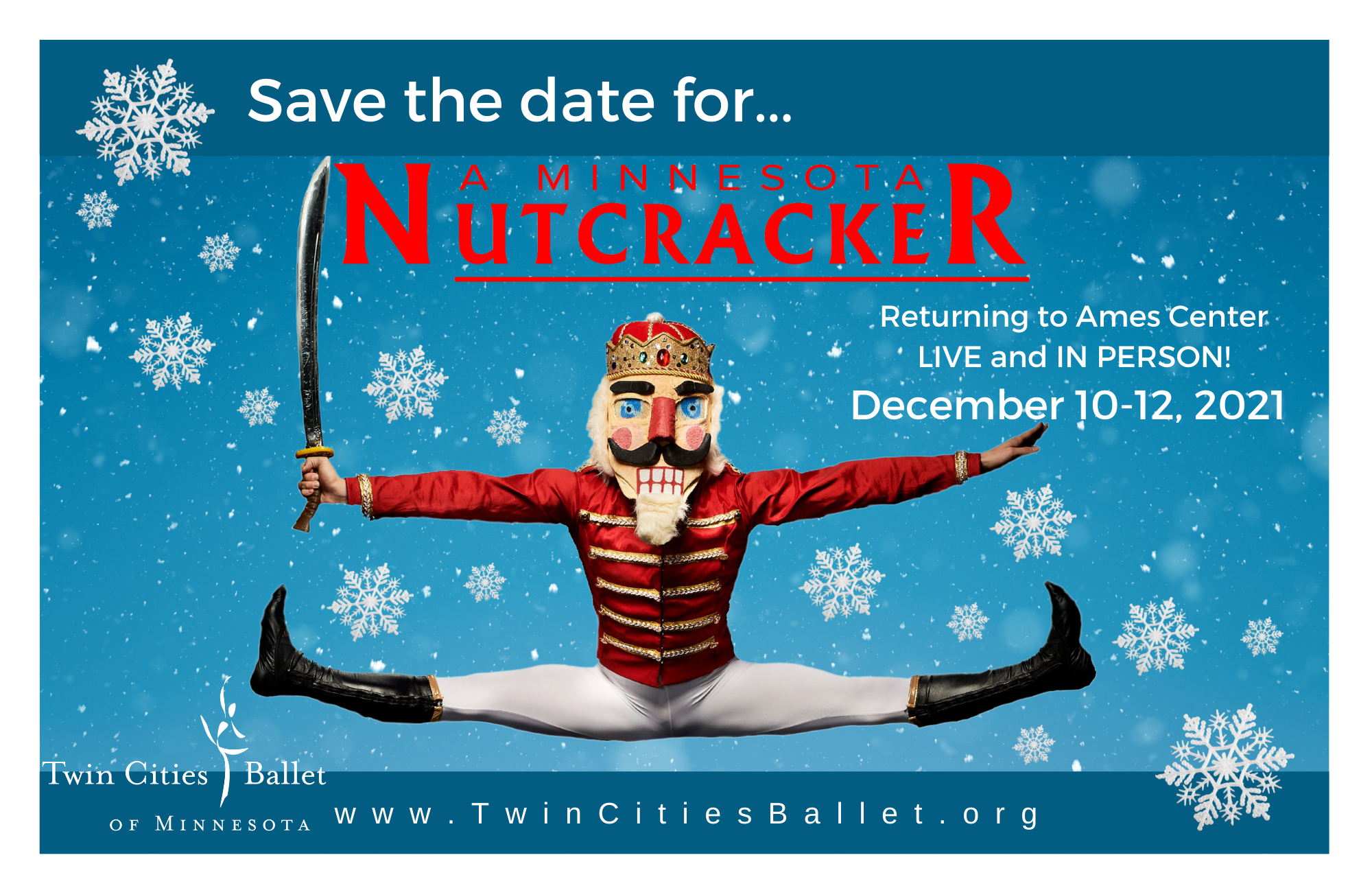 Twin Cities Ballet’s beloved holiday classic with a Minnesota twist returns to Ames Center this December! This production retains all the magic and traditions of the classic Nutcracker ballet, but features Minnesota settings with stunning, custom-designed  Minnesota-centric backdrops, and offers audience members something truly unique: a connection to home. Deemed one of the 12 essential holiday events by MPR, A Minnesota Nutcracker is delightful entertainment for the whole family!