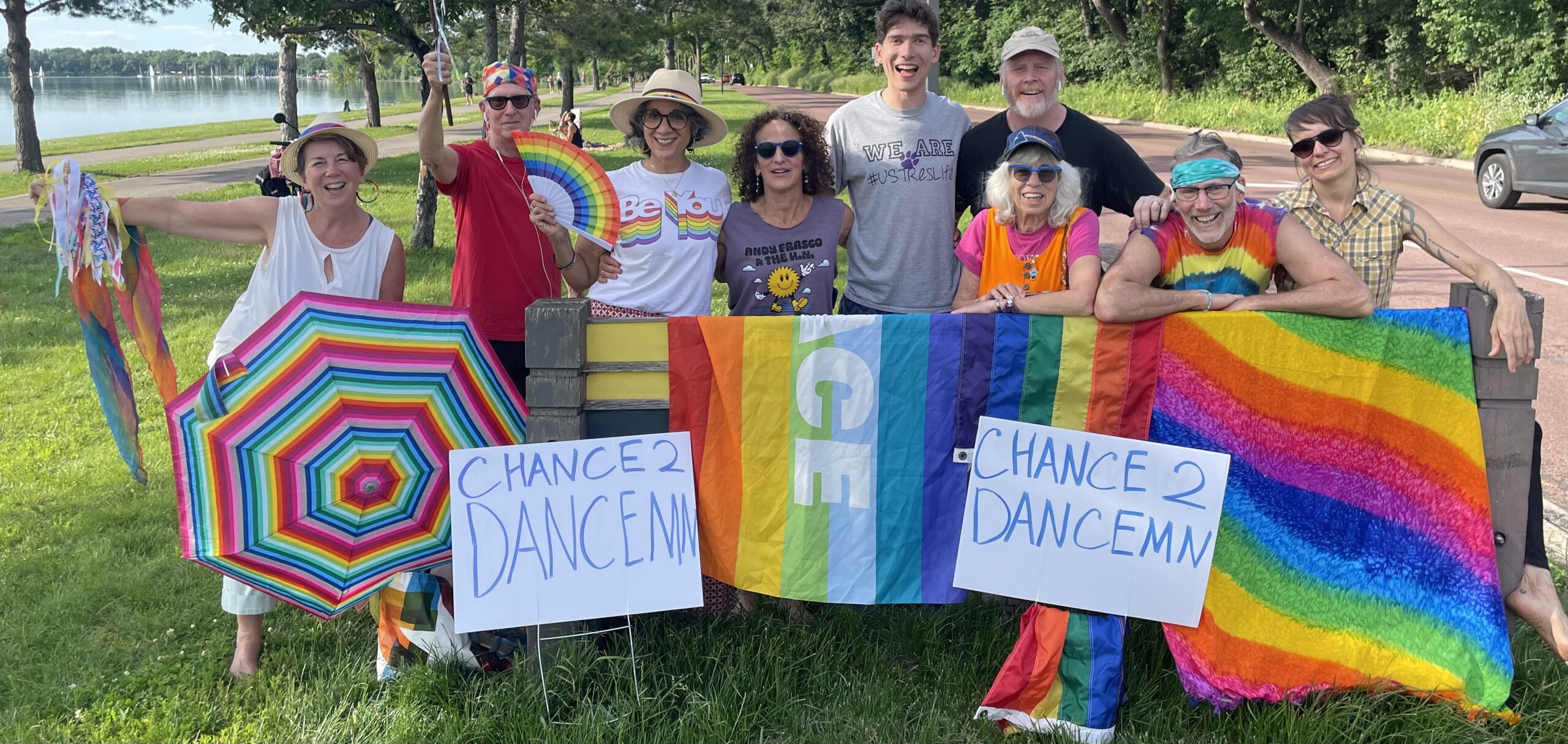 Easy access to parking, sun and shade, grass and pavement, make this an ideal location for al fresco dancing.  There is a porta-pottie, and it’s pretty easy to go for a post-dance dip in the lake. You are invited to bring your own music via phones and ear buds, and partake in the liberating, life giving practice of dancing in public. We also have speakers and can pull up your favorite tunes. Need more info?  Contact Nan Marie Zosel at chance2dancemn@gmail.com.