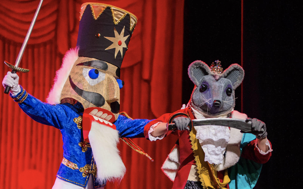 As Clara drifts asleep that night, the audience is transported into her dream. As Clara tiptoes back to the living room she is met by the life sized and animated Rat King and Nutcracker. A battle then ensues with an army of soldiers in Clara’s living room. After successfully defeating the Rat King, the Nutcracker’s spell is broken, and he becomes Prince once again.
