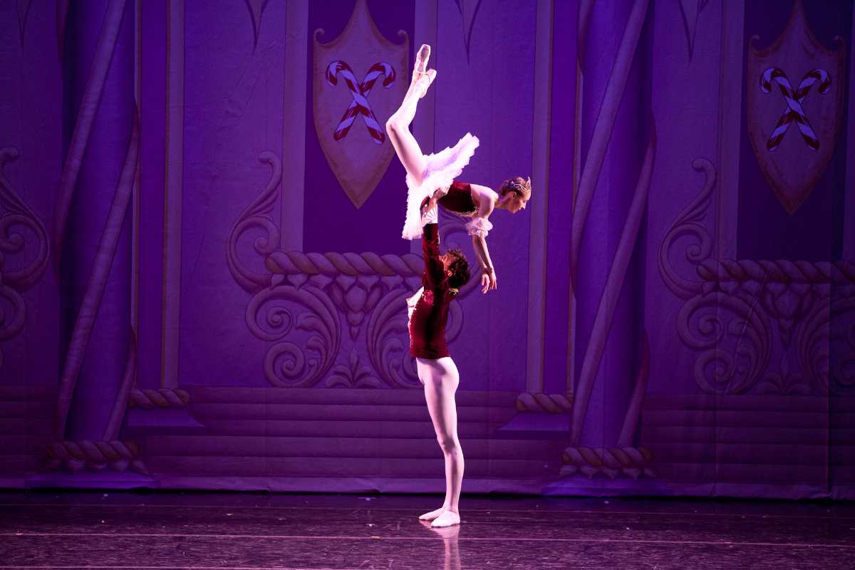 The Nutcracker Prince along with the Snow Queen and Prince, escort Clara into the Kingdom of the Sweets. During this trip, Clara is given a tiara for defeating the Rat King and breaking the Nutcracker’s spell. A beautiful festival ensues and the visit peaks with a grand pas de deax danced by the Sugar Plum Fairy and her Cavalier. Clara awakes from her dream and cannot decipher what was real or fake.