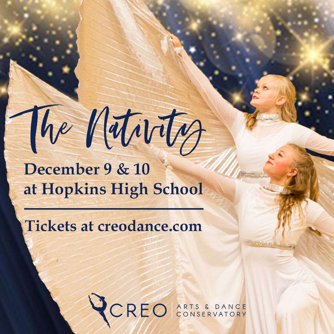 CREO Arts & Dance Conservatory presents The Nativity at the Hopkins High School Main Auditorium, December 9-10, 2023. The show will be performed by The CREO DanceVERVE: Twin Cities.