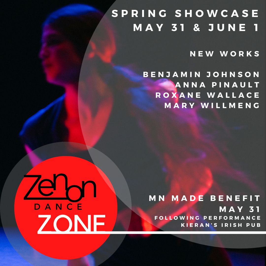 Zenon Dance Zone Spring Showcase and MN Made Benefit is this week! New works by Zone choreographers Benjamin Johnson, Anna Pinault, Roxane Wallace, and Mary Willmeng with the Zenon Zone dancers.