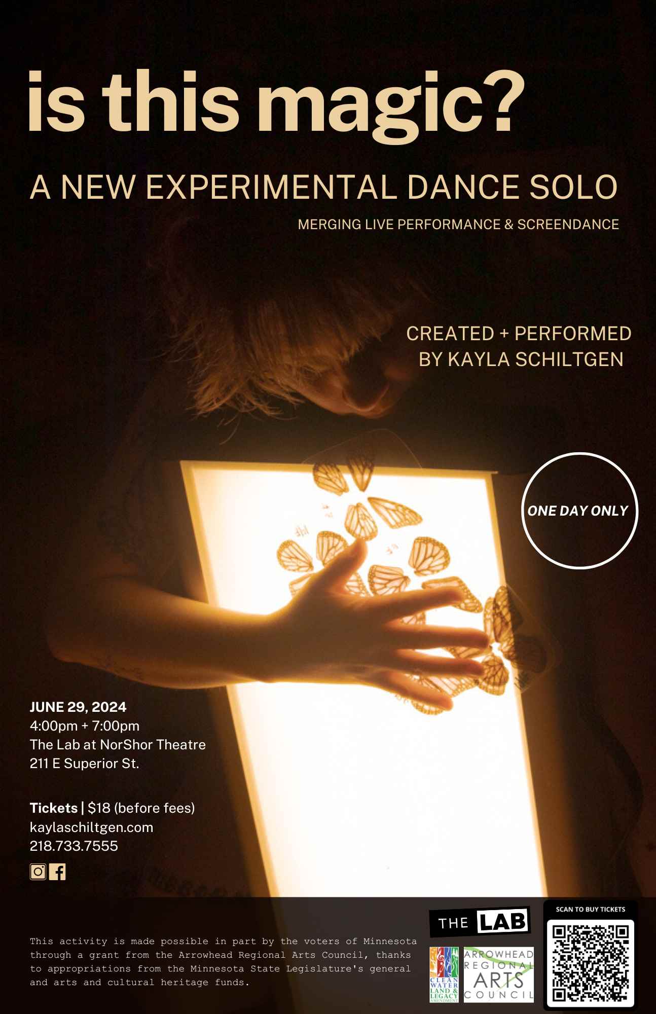 “is this magic?” is a new experimental dance solo blending live performance and screendance to examine anti self-curation as a radical act of personal acceptance. Unfolding through a movement score prioritizing intuition, desire, resourcefulness, and play, each iteration of “is this magic?” is a unique manifestation, offering nuance and fresh meaning.