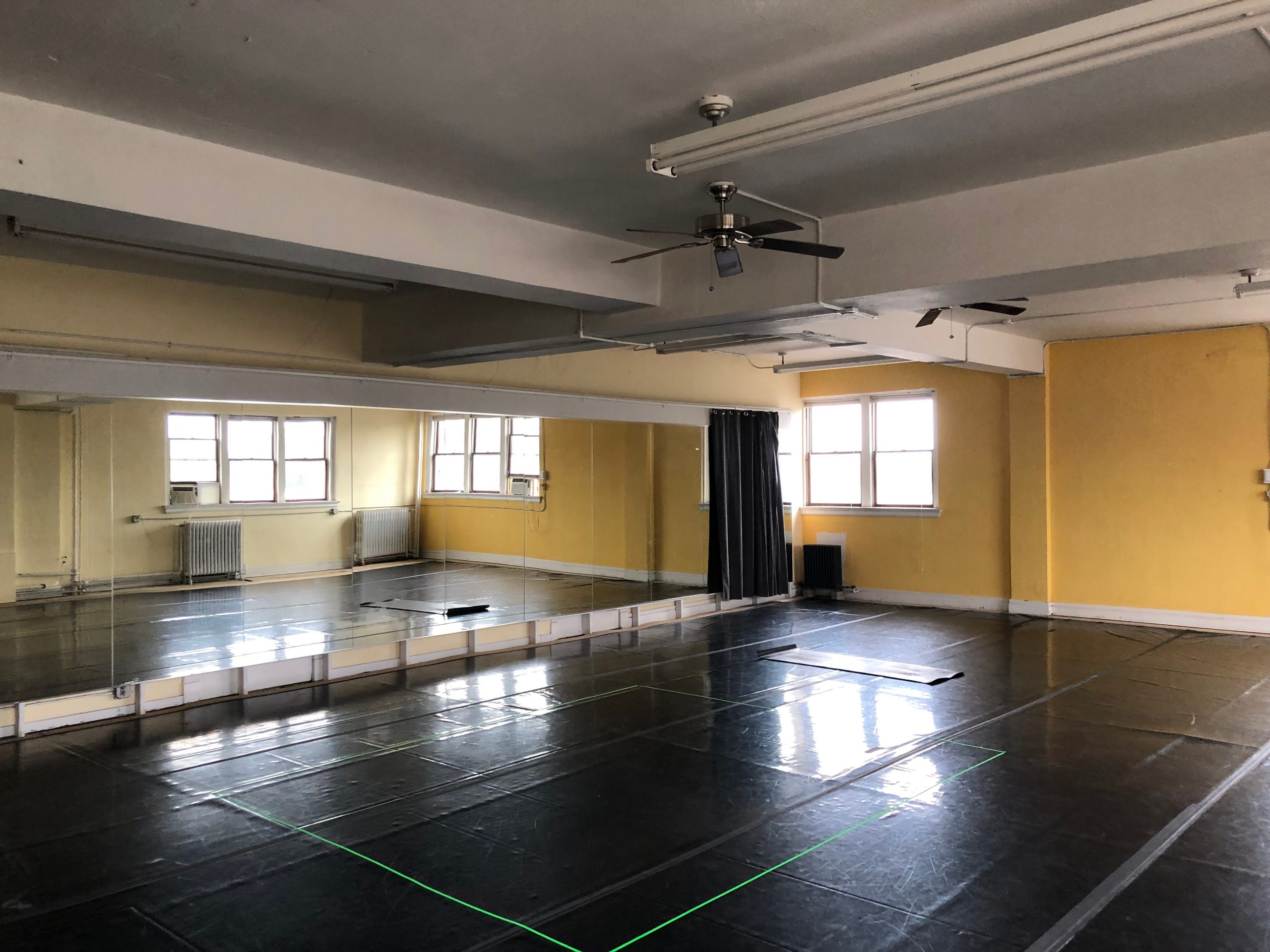 The studios are newly equipped with sprung Harlequin Marley flooring, a bluetooth speaker system, and wifi. There are no mirrors. The studio has a clear COVID safety plan including regular disinfecting of all floors and surfaces, as well as a new HVAC system which refreshes the air 7-8 times per hour. Renters will also have access to a large lobby (25’ x 29’) and up to 50 chairs.