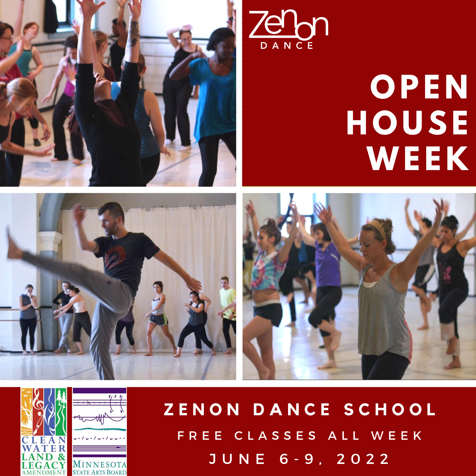 Join us in person or online for a week of FREE classes and great discounts! Zenon Dance School’s Open House Week allows dancers to get a sneak peek of some classes to look forward to during our Summer Session, June 13-September 2, and use exclusive discounts when purchasing summer class passes throughout the week.