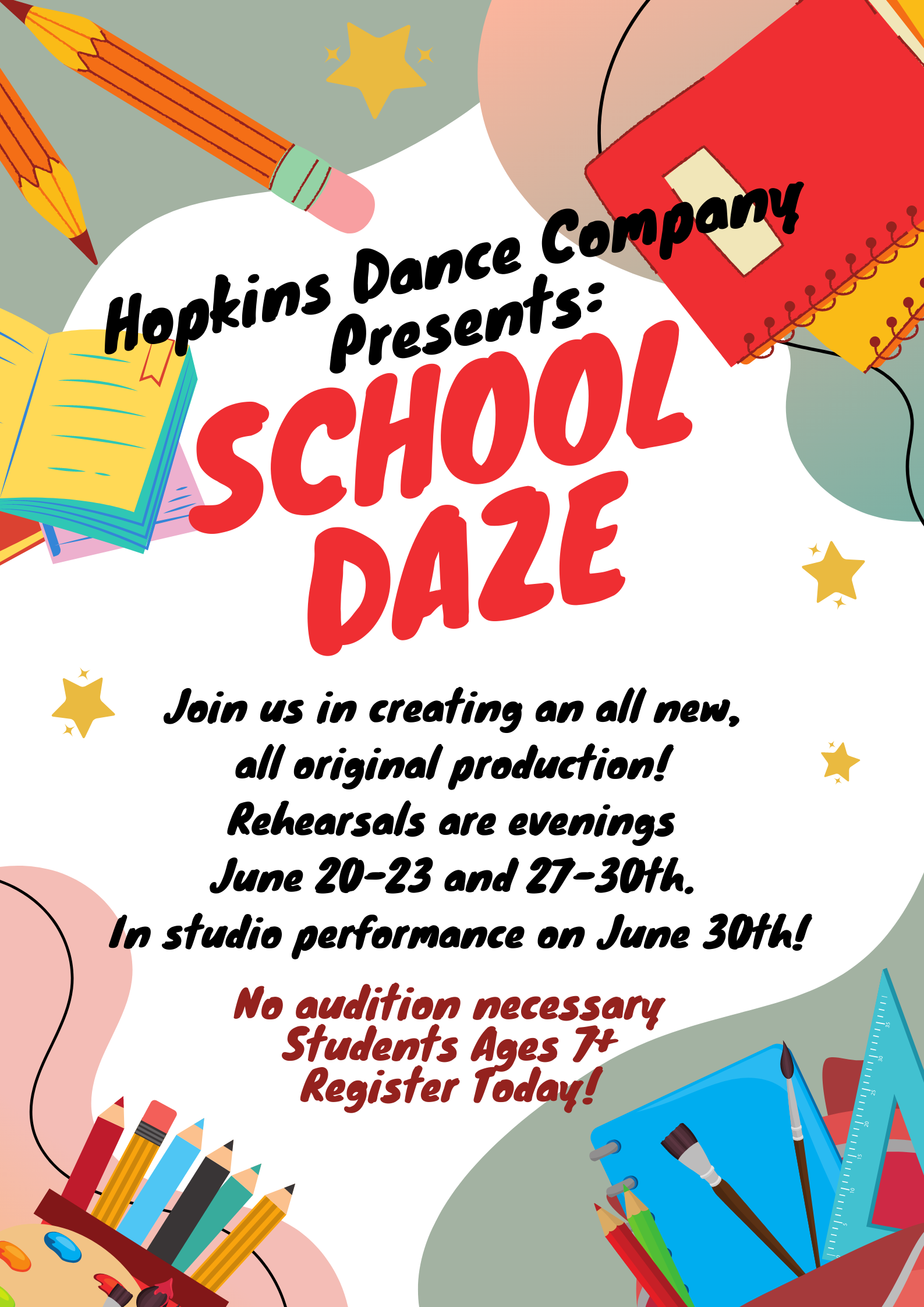 Dancers ages 7–18 are invited to join. No audition necessary. Register at www.hopkinsdance.com.