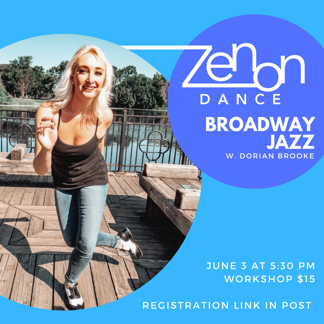 Join Dorian Brooke for a musical theater jazz workshop inspired by choreography from the screen and stage. A fun and upbeat class to help you dance like your favorite musical stars. Give my regards to Broadway!