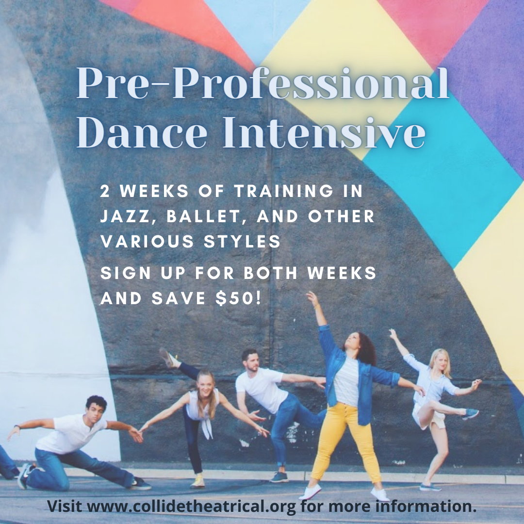 Scholarships available for BIPOC applicants and those underrepresented in dance. Email Chelsea@collidetheatrical.org for more information.