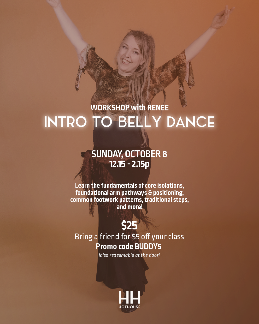 We will learn fundamental core isolations, foundational arm pathways and positioning, common footwork patterns, traditional steps, and more – all while getting a taste of classical and popular Arab music!