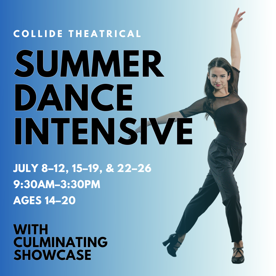 Level placement requires a referral from a teacher or Collide company member, or a two-minute video submission. Please send video (one minute ballet adagio with pirouettes and one minute jazz) or referral name and contact information to Regina@collidetheatrical.org.
