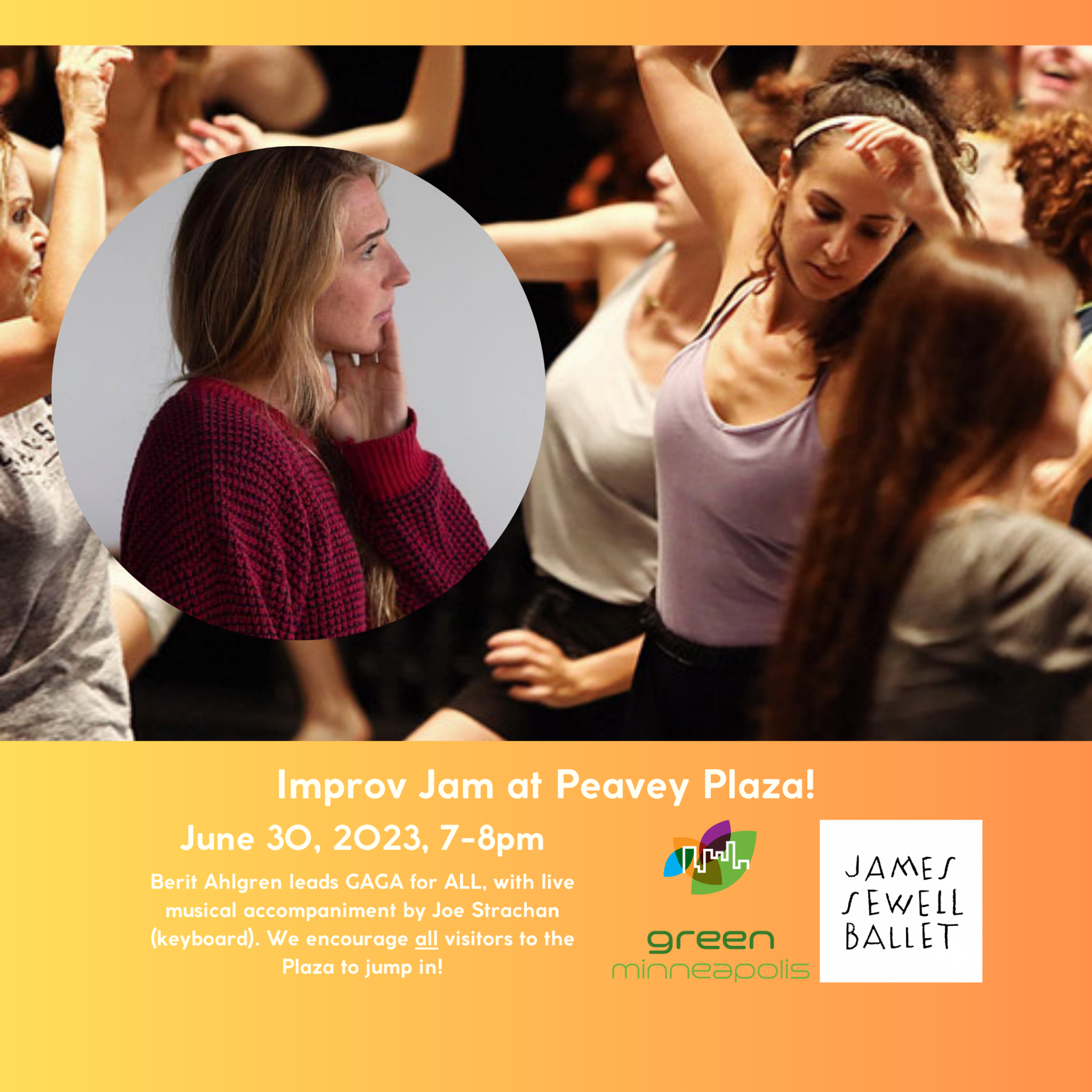 Free improv jam with Berit Ahlgren on Friday, June 30 from 7:00-8:00pm at Peavey Plaza – open to all!