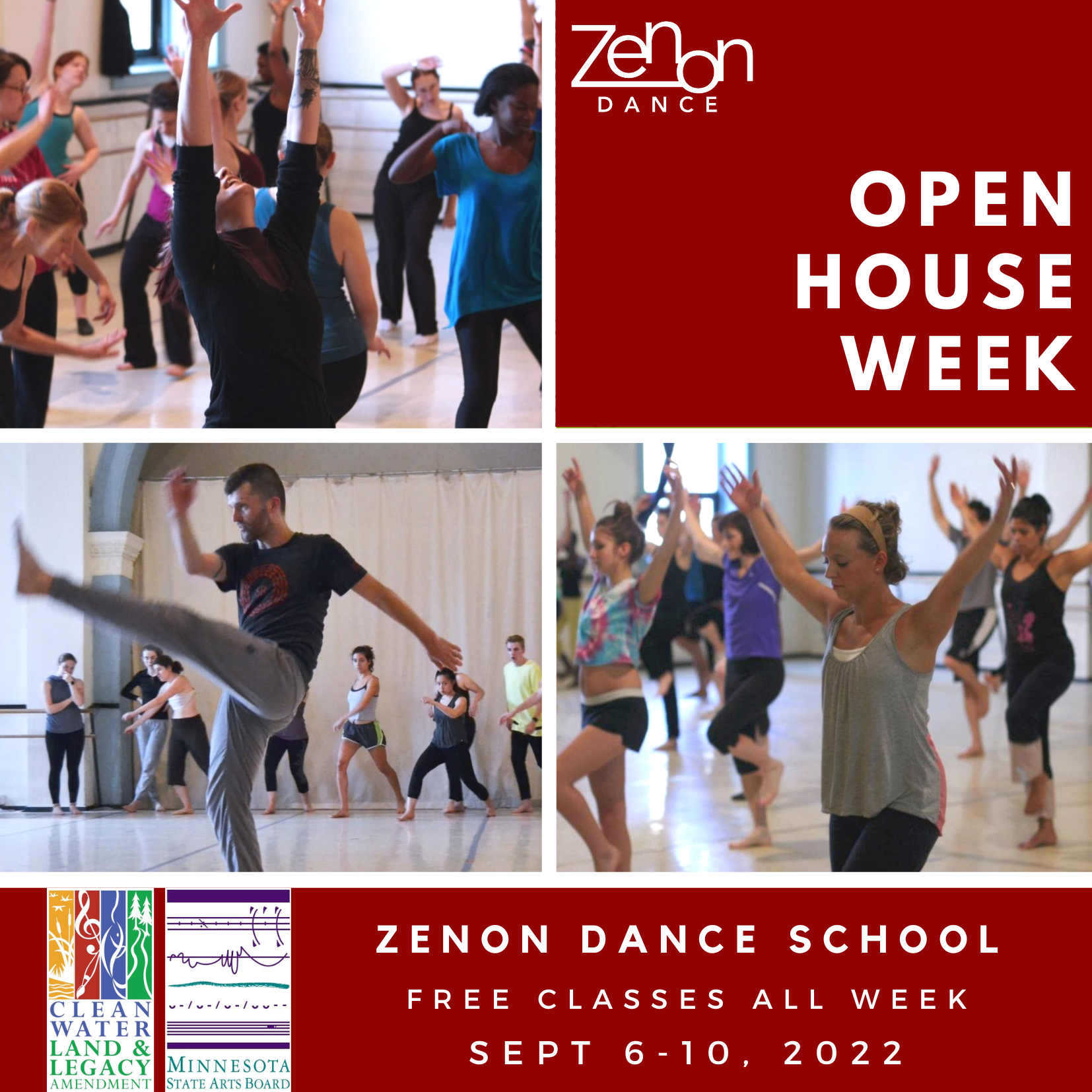 Zenon Dance School’s Open House Week allows dancers to get a sneak peek of some classes to look forward to during our fall session, September 12-December 18, and use exclusive discounts when purchasing fall class passes throughout the week.